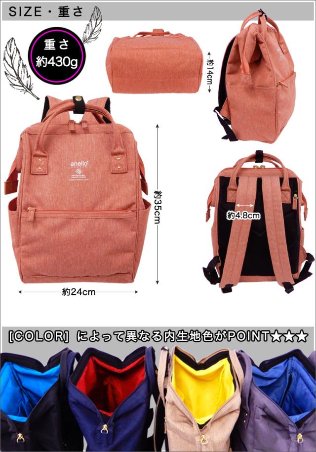 anelloの人気がま口リュックがパワーアップして 【anelloGRANDE】から登場です! パカッと大きく開くがま口タイプは 中の荷物が探しやすく取り出しやすい! 取り出したい物が一目で見つかります。 コンパクトな見た目ですが バッグの容量は約10L! お弁当や水筒などの荷物はもちろん A4サイズ対応で通勤通学バッグにも最適です。 お子様のお着替えやオムツなどを入れて マザーズリュックとしてもお使いいただけます。 撥水加工を施しているので 雨の日にも安心してお使いいただけるようになりました! とっても軽い素材を使用しているので リュックの重さは約430gと超軽量! たくさん荷物を入れても少ない負担でお使いいただけます。 メイン収納のほかにも 大きめのフロントポケットや 500mlペットボトルが入る両サイドポケットなど 便利なポケットが付いていて使いやすさ満点! メイン収納に直結している背面ファスナーもあって とても便利です♪ 背面はメッシュ素材で通気性がよく 暑い季節も背中がムレにくく快適に使用できます。 ポリエステル素材にプリントロゴがカジュアルな印象ですが 金具部分がゴールドなのでスポーティー過ぎず 大人のカジュアルコーデにぴったり! 各カラーで内生地の色が違うのも こだわりポイントです♪ シンプルなデザインとカラーリングで 学生さんからミセスまで、ユニセックスでお使いいただけます。 機能性とデザイン性を兼ね備えたおすすめリュックです。 ※ブランドロゴデザインの変更 ラベル、プリントネーム、ピスネーム含むブランドロゴのデザインが変更になります。 順次新デザインに切り替わりますが、どちらかをお選びいただくことはできません。 ![]() ※当商品は株式会社キャロットカンパニーより仕入れている正規品です。 ※宅配便での発送の場合【沖縄・離島】は別途追加送料がかかります。 ご注文後、店舗からご連絡いたしますのでご確認ください。 |