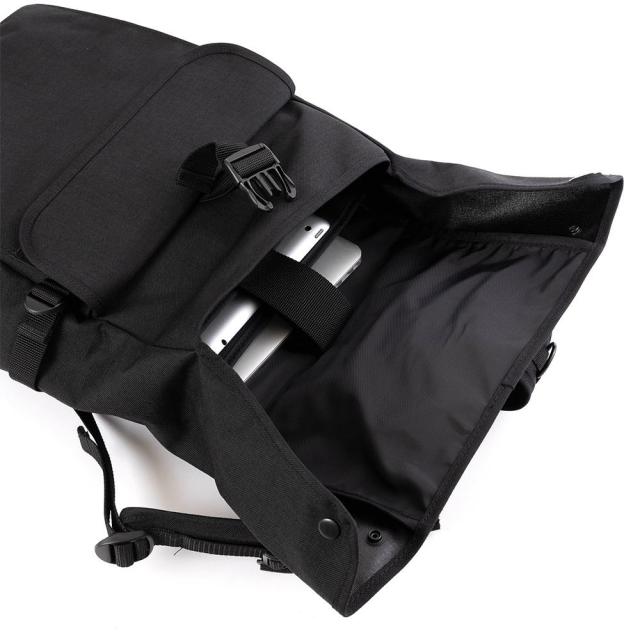 開閉口はロールトップ型になっており、バックルも付いているため、雨風等の侵入を防ぎ、セキュリティーにも優れています。