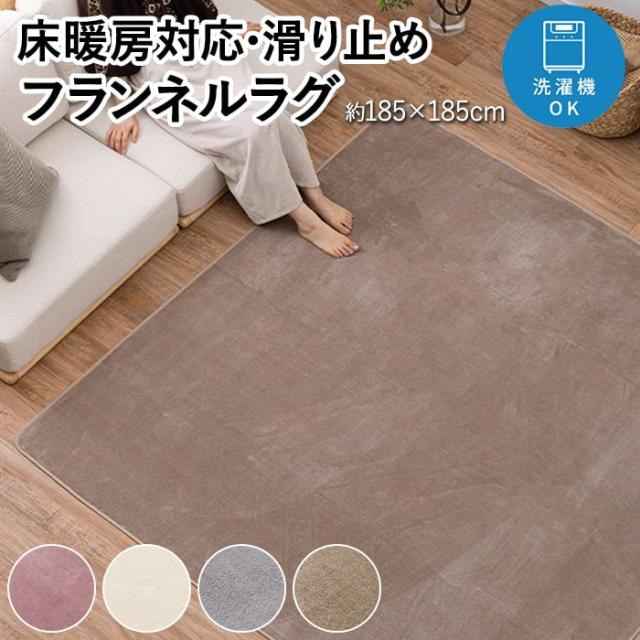 ラグ マット フランネル ウォッシャブル 洗える カーペット 約185×185cm メレンゲタッチラグ (H) ラグマット なめらか 床暖房対応 ホットカーペットカバー あったか じゅうたん ウレタン入り ふかふか 滑り止め 短毛 裏面不織布 引っ越し 新生活
