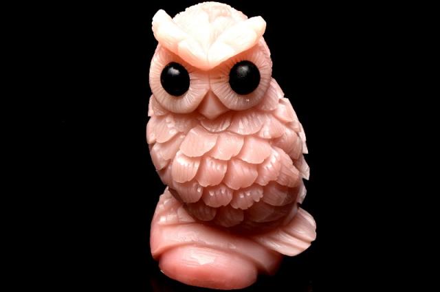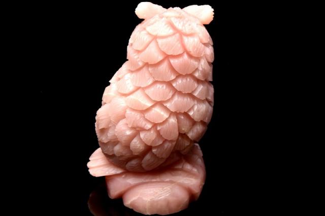 【1点物】縁起物「不苦労」 ピンクタルク(ソープストーン) 52x48x81mm フクロウ彫刻 置物_CG2406 【宅急便のみ】