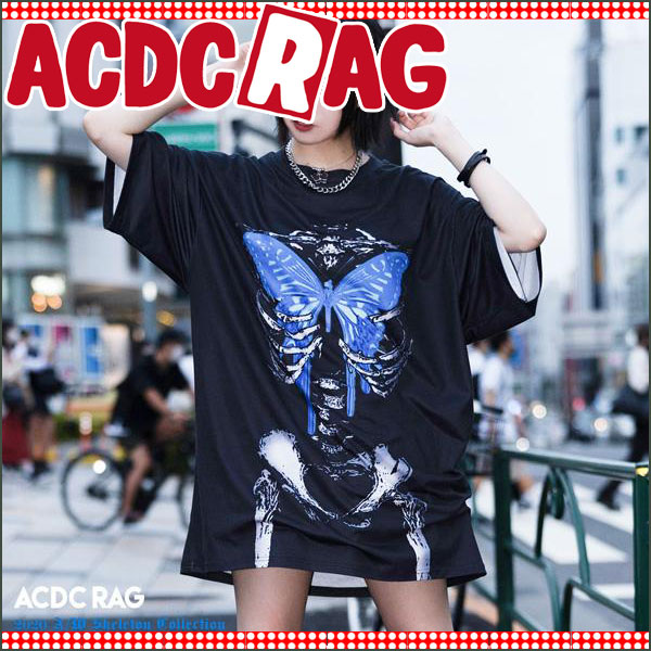 ACDC RAG エーシーディーシーラグ タレバタフライ ヒュージT Tシャツ 半袖 パンク ロック V系 ファッション バンギャ 原宿系 原宿 韓国 ブルー 病みかわいい