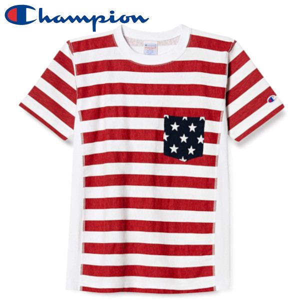 Champion チャンピオン Tシャツ 半袖 ポケット付き 9.4oz 星柄 アメカジ プリント リバースウィーブ ショートスリーブTシャツ C3-F310 メンズ ホワイト