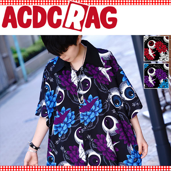 ACDC RAG エーシーディーシーラグ [半袖]ハスノハナシャツ 原宿系 パンク ロック 病みかわいい 蓮の花 目玉 ダーク