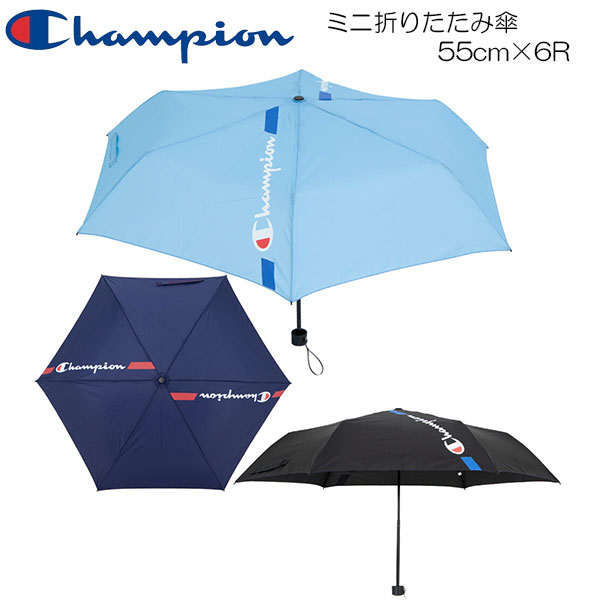 Champion チャンピオン 男児 無地ロゴプリント 耐風 ミニ折りたたみ傘 55cm×6R