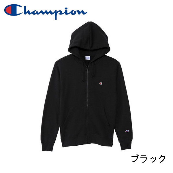 Champion チャンピオン ワンポイント刺繍 ジップフーデッドスウェットシャツ フルジップパーカー C3-Q103 メンズ ブラック