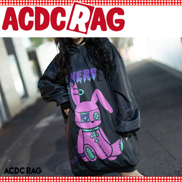 ACDC RAG エーシーディーシーラグ ネロ BIGパーカー 長袖 パンク ロック V系 ファッション バンギャ 原宿系 原宿 韓国 病み 病みかわいい ブラック/パープル
