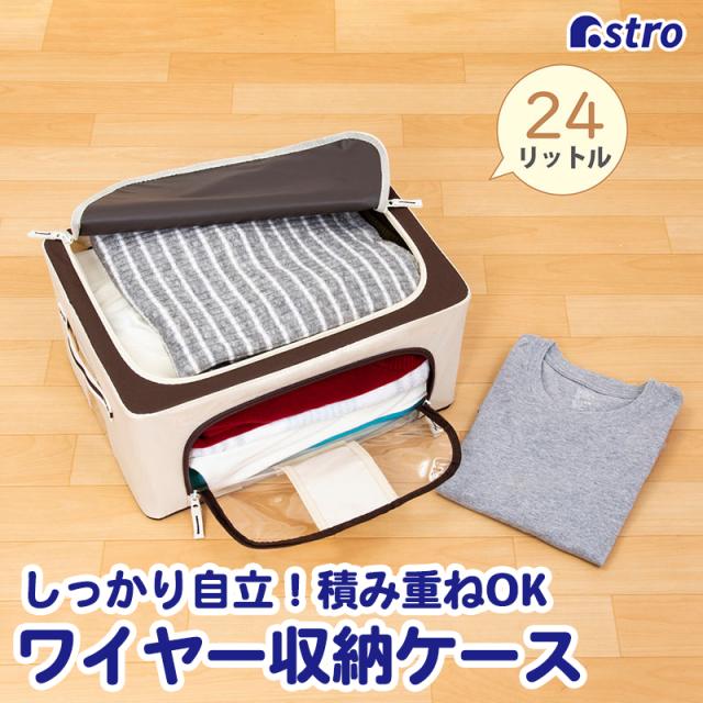 収納ケース 衣類用 約24L ワイヤー・底板入り 収納ボックス 積み重ねできる 中身が見える 折りたたみ アイボリー×ブラウン アストロ 730-44