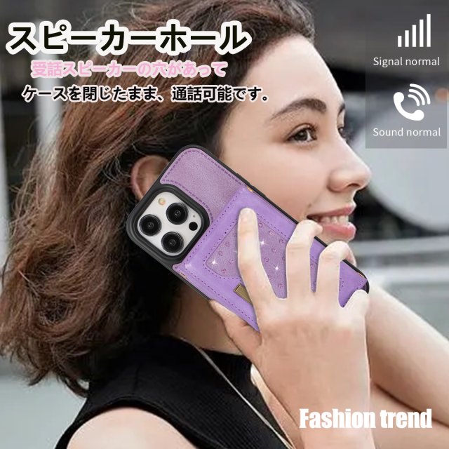 ケースの色合いに合わせたストラップ付属で、落下防止&荷物を減らせます。