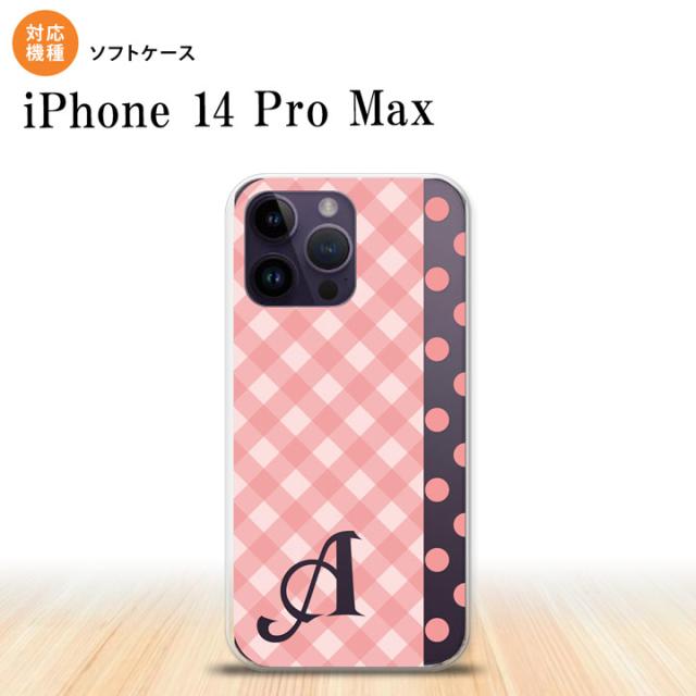 iPhone14 ProMax iPhone14 Pro Max スマホケース 背面ケースソフトケース チェック ドット ピンク +アルファベット 2022年 9月発売 nk-i14pm-tp1521i