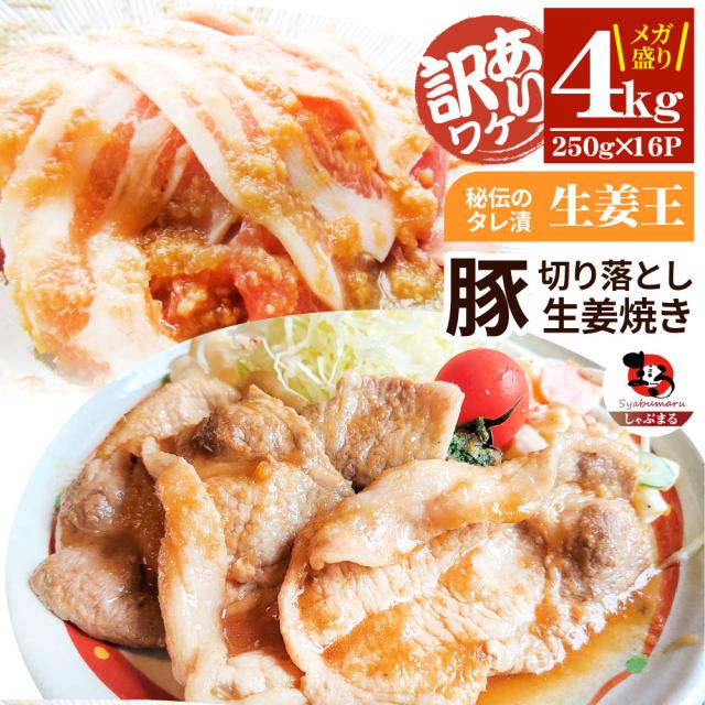 肉 訳あり 豚 生姜焼き 焼くだけ 4kg(250g×16)「生姜王」 ジューシー ミックス 豚 生姜 焼き 切り落とし おかず *当日出荷 お肉の しゃぶまる