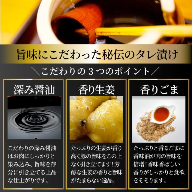 豚肉、醤油(国内製造)、糖類(砂糖、果糖ぶどう糖液糖)、生姜、食塩、醸造酢、味噌、ジンジャーぺースト、植物油脂、香味油、ごま、香辛料/増粘剤(加工デンプン、キサンタンガム)、調味料(アミノ酸)、酸化防止剤(ビタミンC)、カラメル色素、香辛料抽出物、(一部に小麦・ごま・大豆を含む)