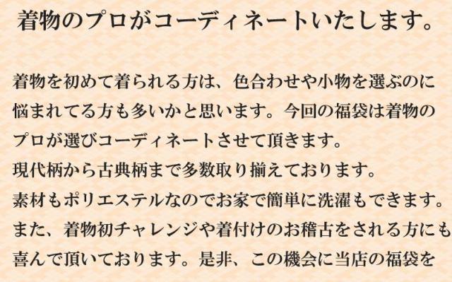 | 着物初心者さんも 2着目のお着物を探しの方も 全力で応援♪ 着物でのお出掛けや、着付け教室、 お食事会やお茶のお稽古などに お手軽に一式揃えたい時にご活用下さい。 【セット内容】 洗える着物 洗える長襦袢 半幅帯 草履 着物スリップ(肌着) 腰紐(3本) 衿カラー マジックベルト 前板 足袋 【素材】 着物・帯・長襦袢:ポリエステル100% 【着物サイズ】 Мサイズ 適応身長155cm〜165cm 身丈:約160cm 袖丈:約49cm 裄丈:約66cm Lサイズ 適応身長158cm〜168cm 身丈:約163cm 袖丈:約49cm 裄丈:約68cm 【草履サイズ】 長さ約24cm 巾約7.5cm 高さ約3.5cm 対応サイズ22cm〜24.5cmくらいまで 【素 材】台:ポリウレタン・鼻緒:ポリエステル 【ご注意】 最大限の色表現をしておりますがモニターにより 若干色目が違う場合がありますので予めご了承ください 店頭販売・その他WEBサイトでも販売しております。 直ちに、完売処理をしておりますが 万が一ご注文が重なった場合に関しましては、 ご注文時間が早いほうを優先させていただき その商品をお届けできない場合がありますので、 ご了承ください。 |