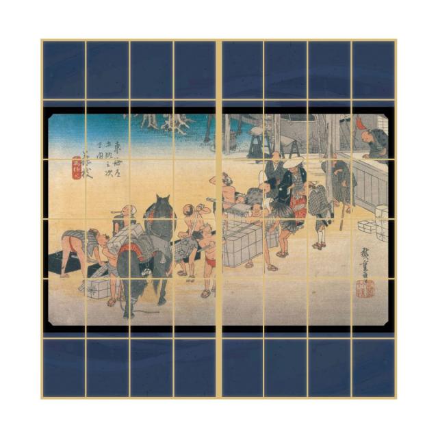 浮世絵 障子紙 東海道五十三次 歌川広重 藤枝宿 人馬継立 2枚1組 のりで貼るタイプ 幅91cm×長さ182cm しょうじ紙 アサヒペン JTB-023S