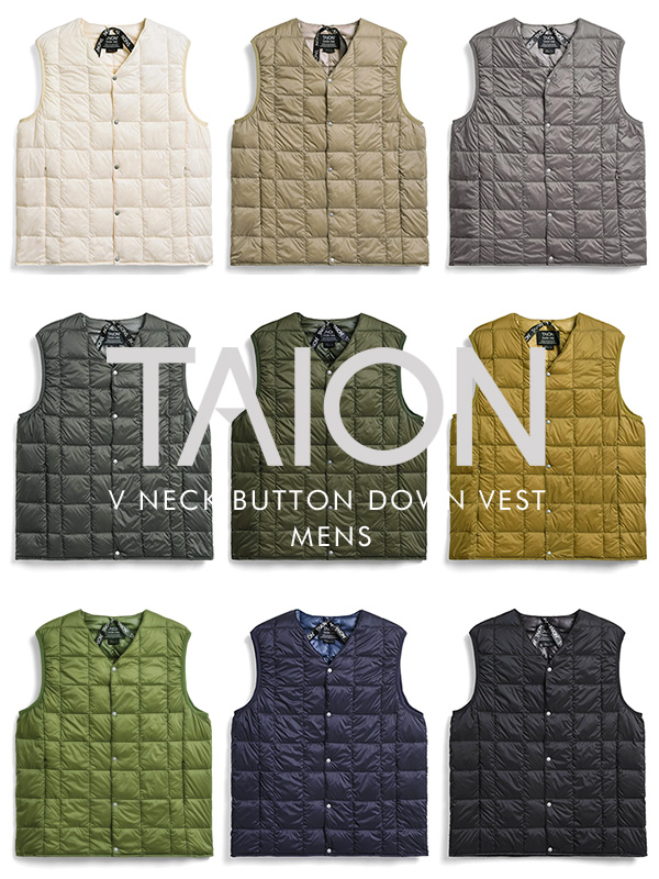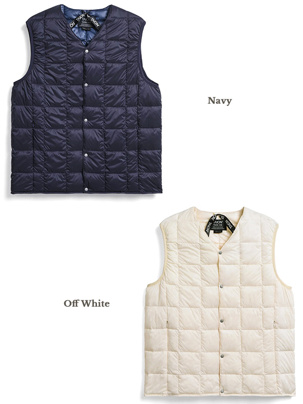 TAION タイオン インナーダウンベスト ●送料無料 TAIONの定番、ベーシックインナーダウン。軽くて暖かく着回しやすいシンプルなデザインが特徴です。