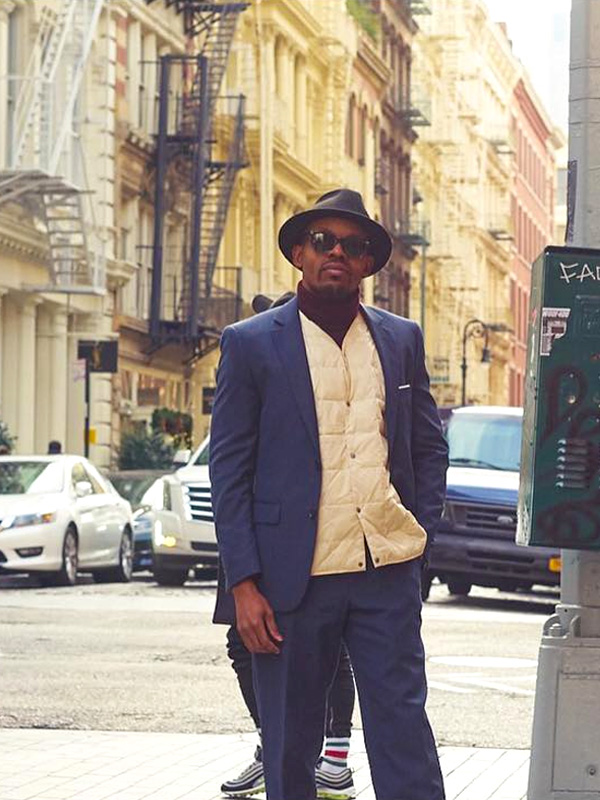 Vネックの首元はシャープでスッキリとした印象を与えてくれます。