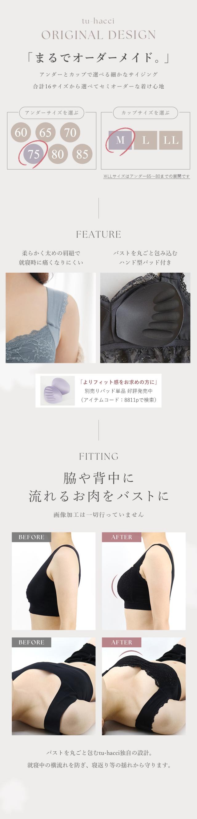 アンダーがきついと感じられる場合、製造の過程でまれに 内部にしつけ糸が残っている場合がございます。 その場合は、両手でアンダー部分を引き伸ばしてからご着用下さい。 ブチブチとしつけ糸が切れる音がしますが 仮縫いの糸のため品質には問題ございません。 |
