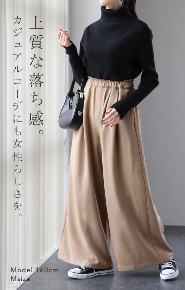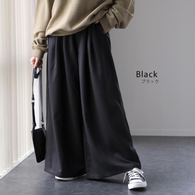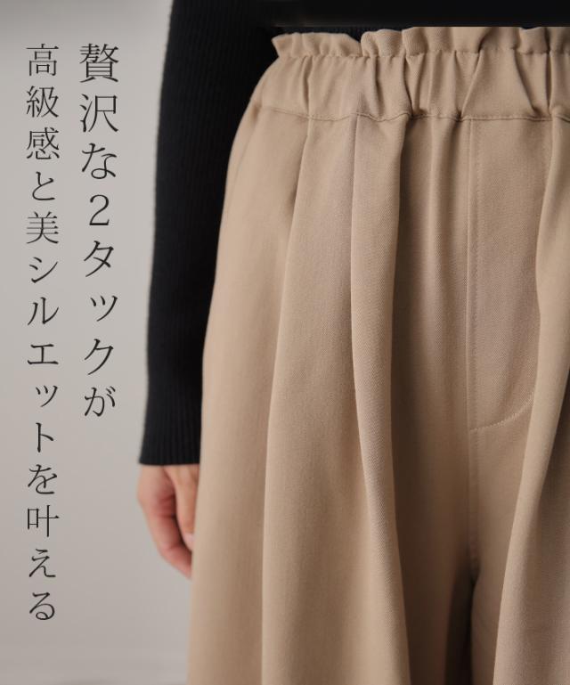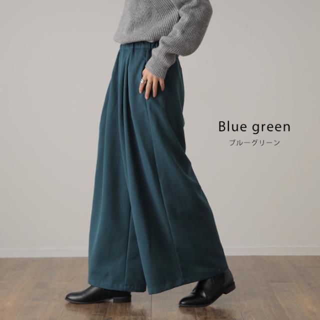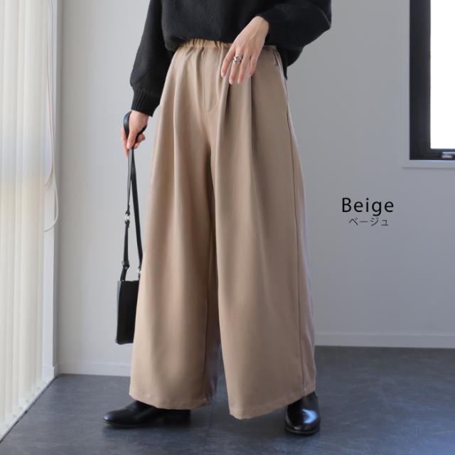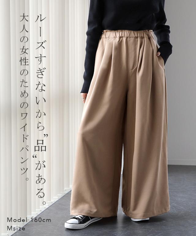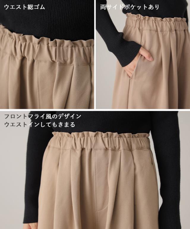 パンツ「 大胆 ワイド 」 ワイドパンツ レディース ロング フレアパンツ フレア ボトムス タックパンツ タック ゴム ガウチョ 落ち感 ゆったり ドレープ 大きいサイズ ずぼん ズボン 体型カバー きれいめ ブラック ベージュ 黒 ブルー 冬 秋 HUG.U 秋新作
