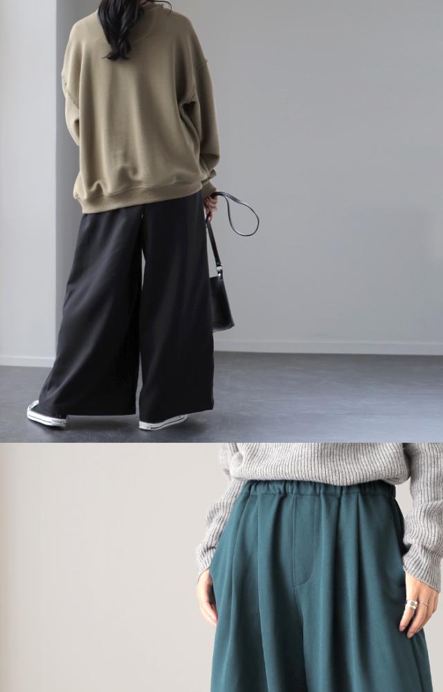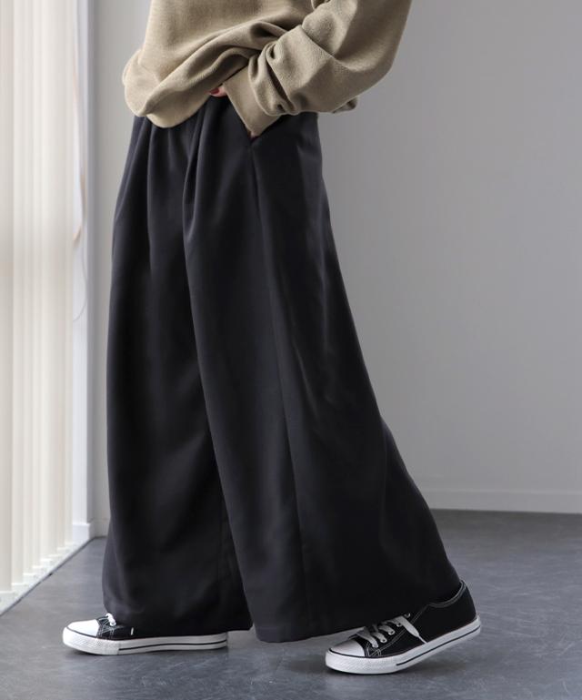 T/R素材を使用したトロンとした落ち感あるワイドパンツです。