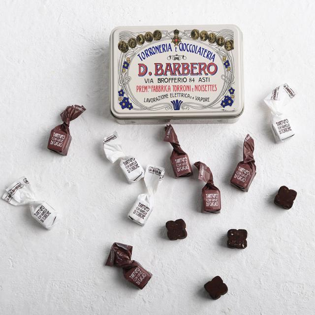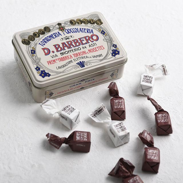 ちょっとしたプレゼントや自分へのご褒美にぴったり。イタリアの老舗チョコレートブランド「BARBERO(バルベロ)」自慢のトリュフチョコレート2種が詰まった贅沢なチョコレート缶です。