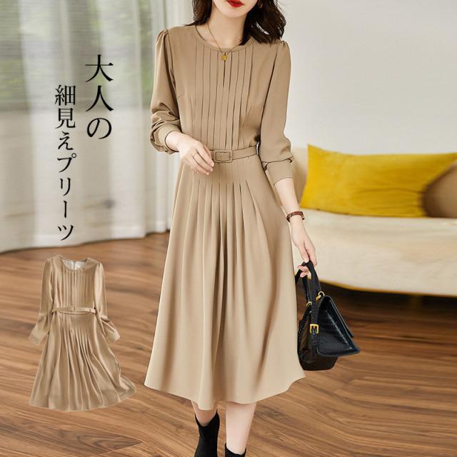 プリーツワンピース レディース ワンピース マキシ丈ワンピース 秋冬 プリーツスカート Aライン オシャレ 通勤 着痩せ ファッ