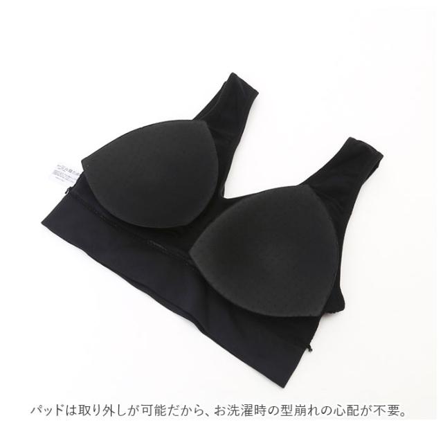 | 商品説明 | ・24時間使える美バストブラ♪バストをサポートする「ゆる圧ブラ」が新登場。 ・締めつけ感のないノンワイヤー仕様だから、長時間の着用もストレスフリー◎ ・アウターに響きにくい、シンプルなつくり。 ・サラッとした肌触りでムレにくく、オールシーズン快適! ・バストを心地よくサポートしてくれる3D構造。 ・バストの揺れを抑え、横流れを防止する脇高設計。 ・伸縮性があり、身体のラインに心地よくフィット。 ・パッドは取り外しが可能だから、お洗濯時の型崩れの心配が不要。 ・幅広ストラップで、肩に食い込みにくいのも嬉しいポイント。 ・ご自宅でのリラックスタイムにぴったり。ナイトブラとしても活躍! |