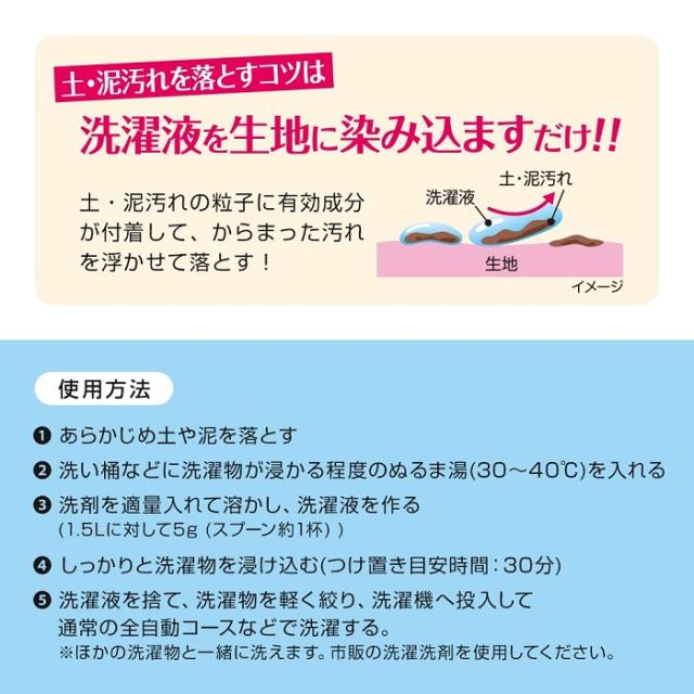 クリーニング屋さんの土汚れ泥汚れつけおき洗剤 粉末洗剤 つけ置き もみ洗いなし 予洗い 靴下 泥洗い 作業着 体操服 ユニフォーム つけおき洗い 日本製