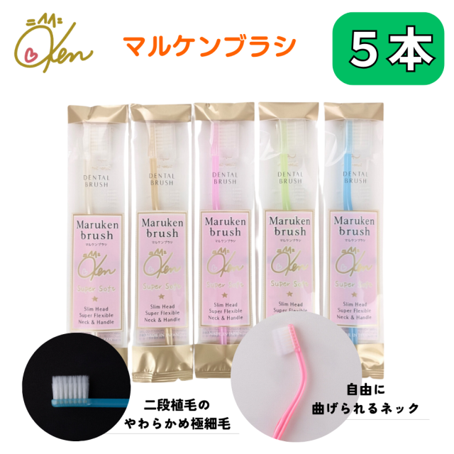 マルケン歯ブラシ 5本セット(5色×各色1本) ソフトな力で汚れを吸着 乳幼児の寝かせ磨きにも使えます オーラルケア コンパクト 磨きやすい 歯ブラシ マルケン マルケンブラシ かわべセミナーズ