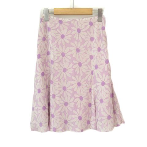 【中古】エフデ ef-de スカート フレア 花柄 シフォン 7 紫 ラベンダー レディース