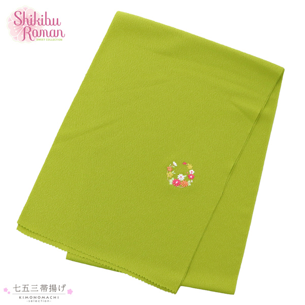 七五三 女の子 帯揚げ 単品 ブランド Shikibu Roman 式部浪漫「黄緑色 花の丸」7歳 女児 七五三小物 おびあげ 和装 着物【メール便不可】ss2506kkd10