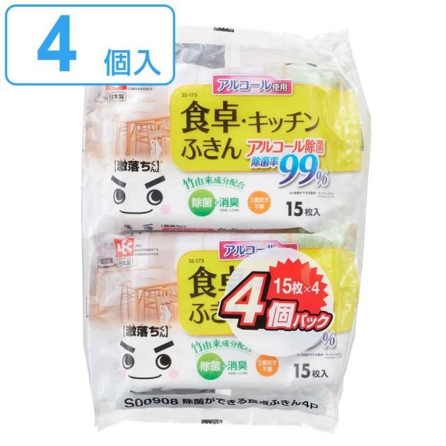 ウェットシート 水の激落ちシート 食卓キッチン 15枚入 48個入 ( 激落ち くん 除菌シート 99% アルコール使用 消臭 竹由来 天然成分 キッチン ウェットティッシュ 食卓 油汚れ 拭き掃除 使い捨て 台拭き 布巾 大判 )