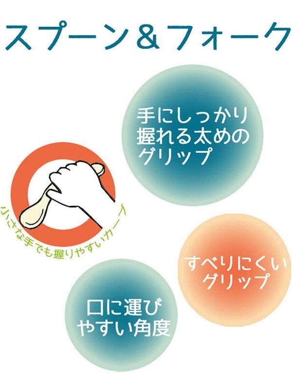 ・スプーンの先端が斜め形状のため、お子様が食べ物をを口に運びやすくなっています。