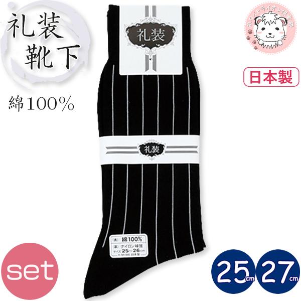靴下 メンズ 礼装用ソックス ストライプ 2足セット 日本製 冠婚葬祭 結婚式 葬式 ビジネスソックス 25cm/27cm