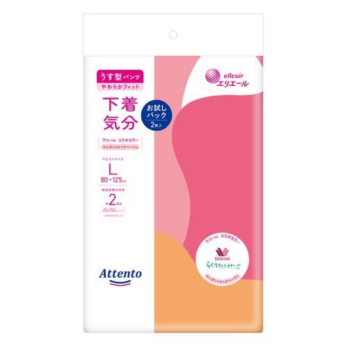 アテント うす型パンツ 下着気分 エレガントピンクべージュ L お試しパック(2枚入)[大人紙おむつ パンツ]
