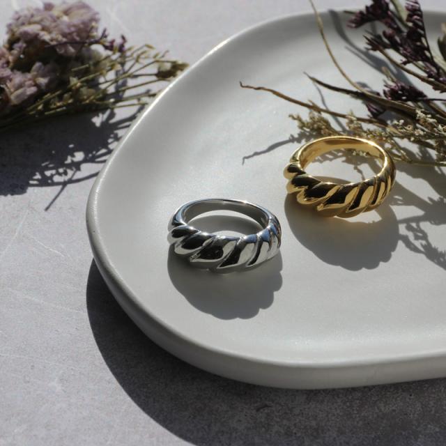 ツイストデザインが都会的で洗練された印象を与えるリングです。