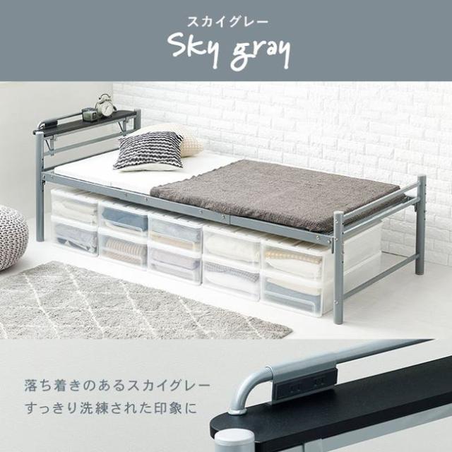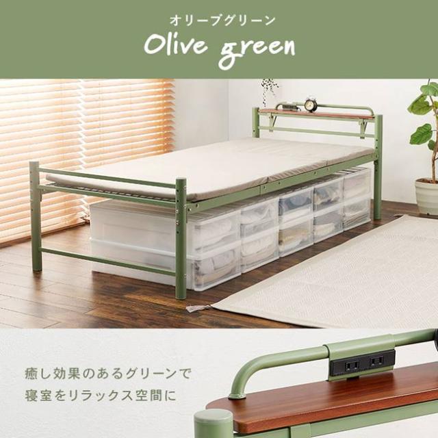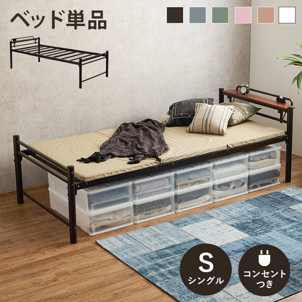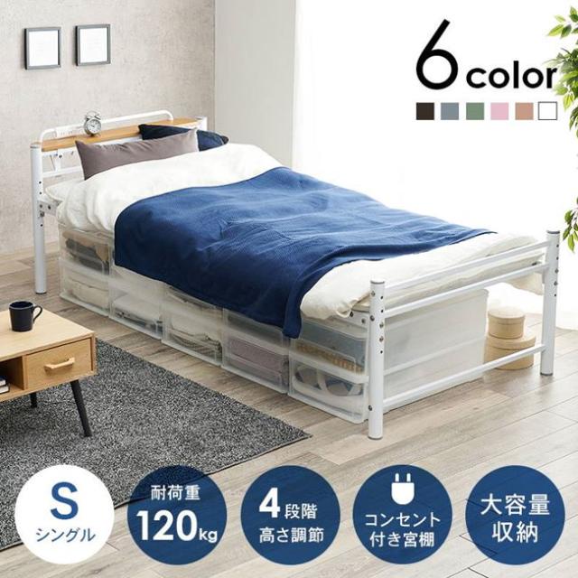 ベッドフレーム 宮棚付き シングルベッド 敷布団用 ロングサイズ おしゃれ ニュアンスカラー