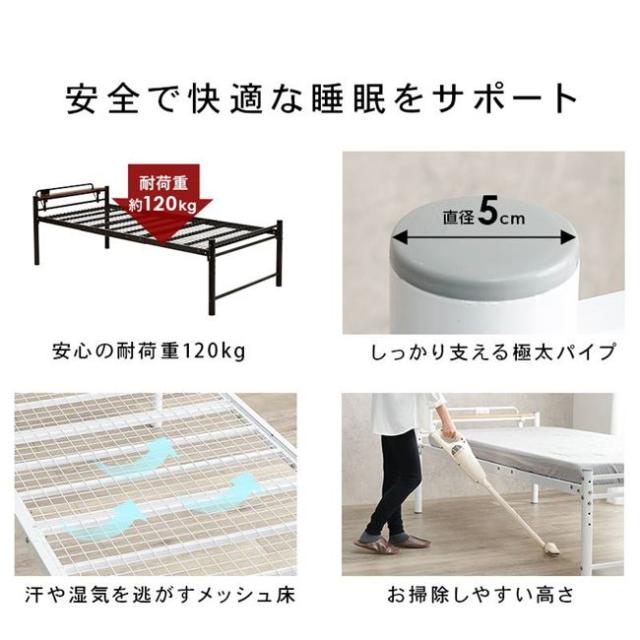 ●汗や湿気を逃がすメッシュ床板、床板は安心の耐荷重120kgの頑丈設計です。