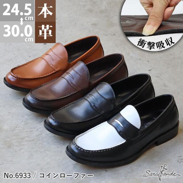 ビジネスシューズ 本革 メンズ 革靴 レザー クッションインソール 防滑ソール 幅広 3E 歩きやすい No.6933 24.5-30.0cm 大きいサイズ 黒 茶 履きやすい コインローファー ブラック ブラウン 紳士靴 牛革 衝撃吸収 仕事 通勤 オフィス キングサイズ SARABANDE サラバンド 693