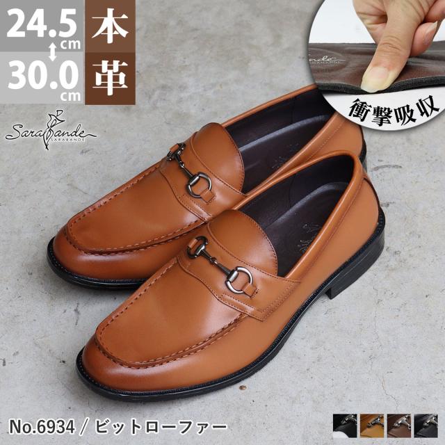 ビジネスシューズ 本革 メンズ 革靴 レザー クッションインソール 防滑 ビット 幅広 3E 歩きやすい No.6934 24.5-30.0cm 大きいサイズ 黒 茶 履きやすい ローファー ブラック ブラウン カジュアル クラシカル ビジカジ 仕事 通勤 オフィス SARABANDE サラバンド 693