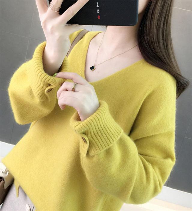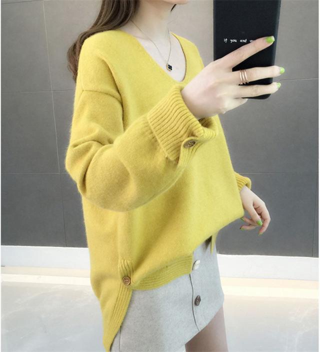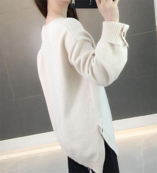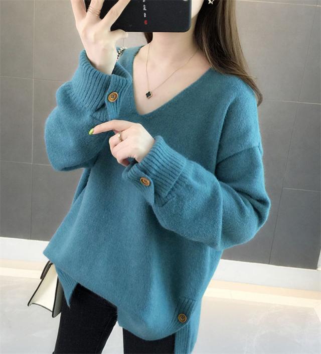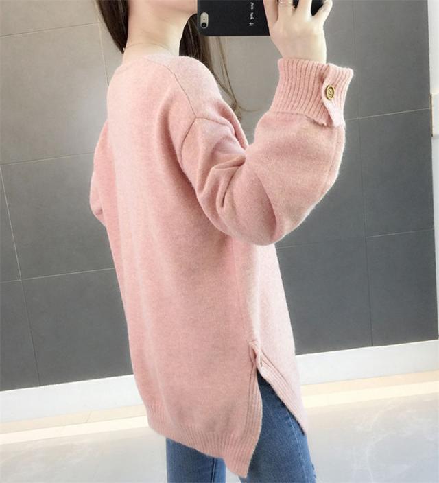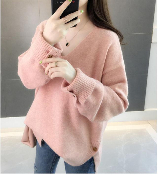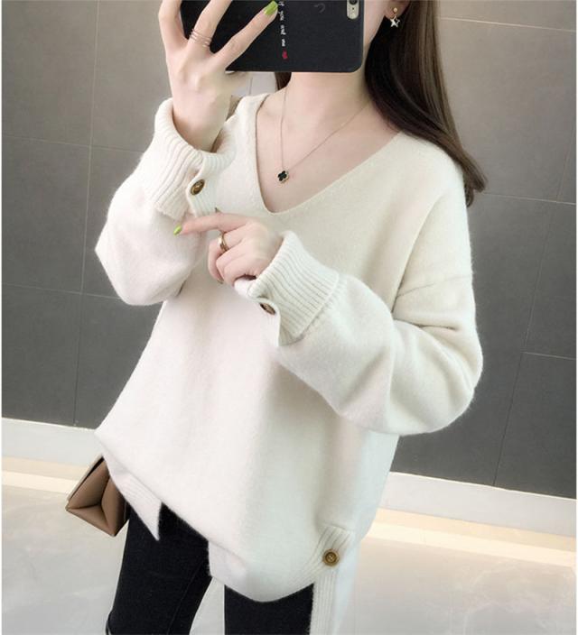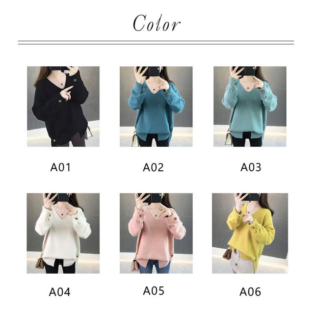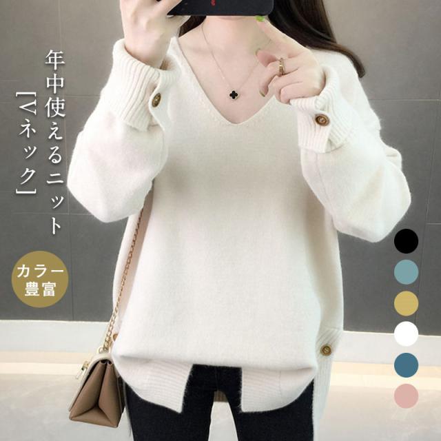 ニットセーター 秋冬 レディース カジュアル Vネック ニットソー スリット入り 無地 ニットトップス プルオーバー ニット ファ