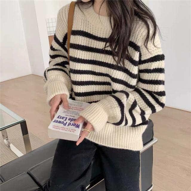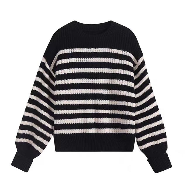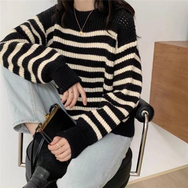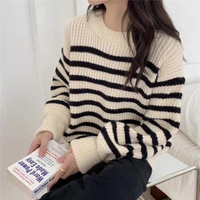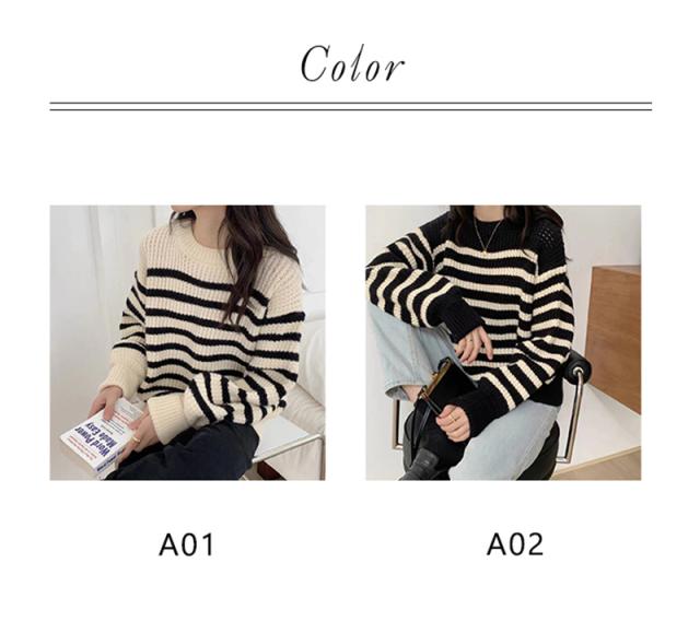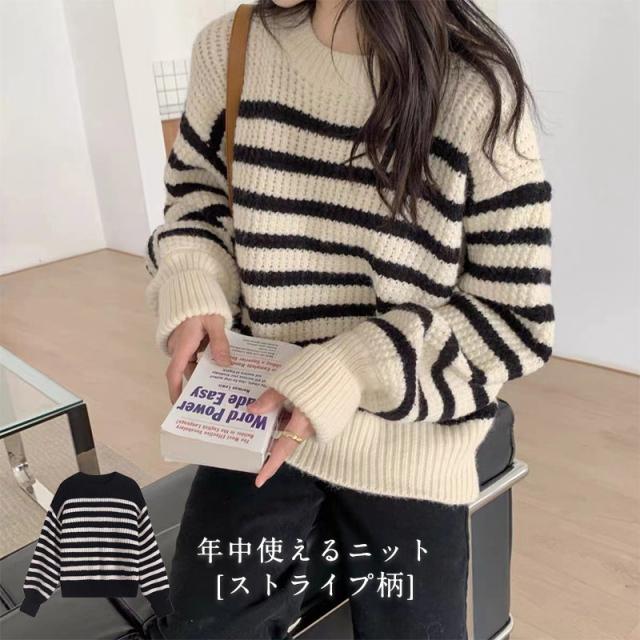 ニットセーター レディース 秋冬 ストライプ柄 防寒 防風 通勤 通学 大人 柔らかい カジュアル 着痩せ おしゃれ ファッション