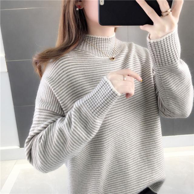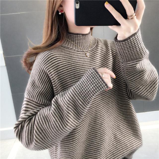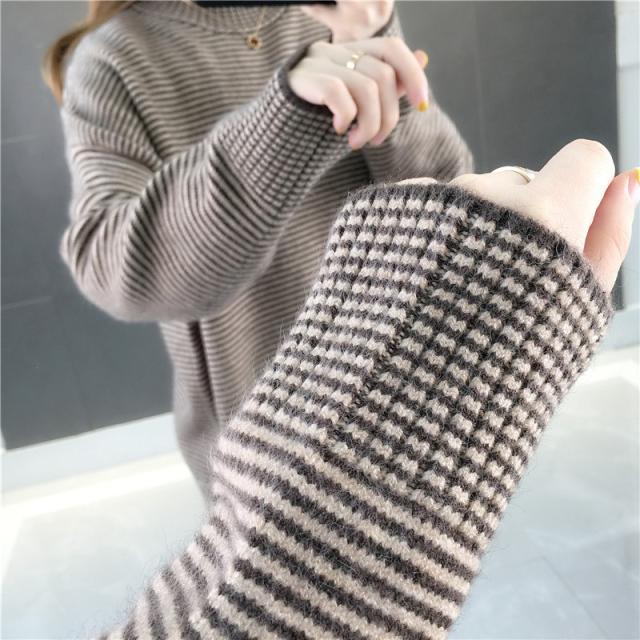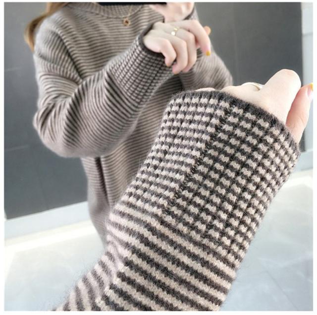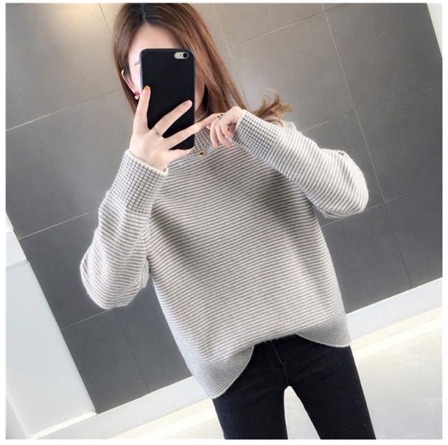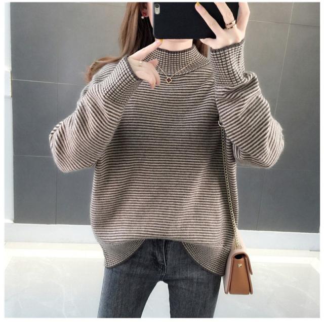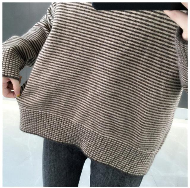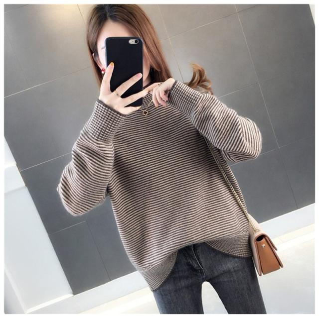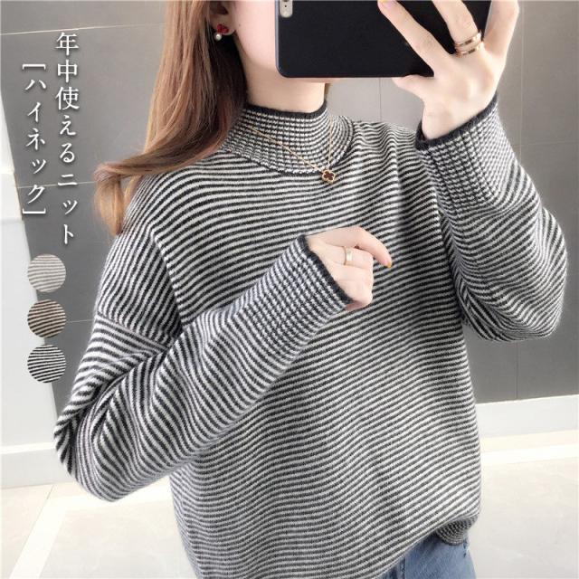 ニットセーター 秋冬 レディース ストライプ柄 防寒 防風 通勤 通学 カジュアル ゆったり ファッション おしゃれ 送料無料