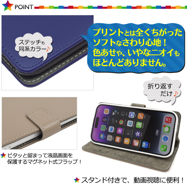 スマホケース iPhone14Pro用 手帳型 カラーレザー スマホケース ベーシック 無地 シンプル かわいい ケース スマホカバー オシャレ 上品 保護カバー おしゃれ お洒落 iPhoneケース 携帯ケース 大人女子 落ち着いたデザイン スマートフォンケース SoftBank au docomo