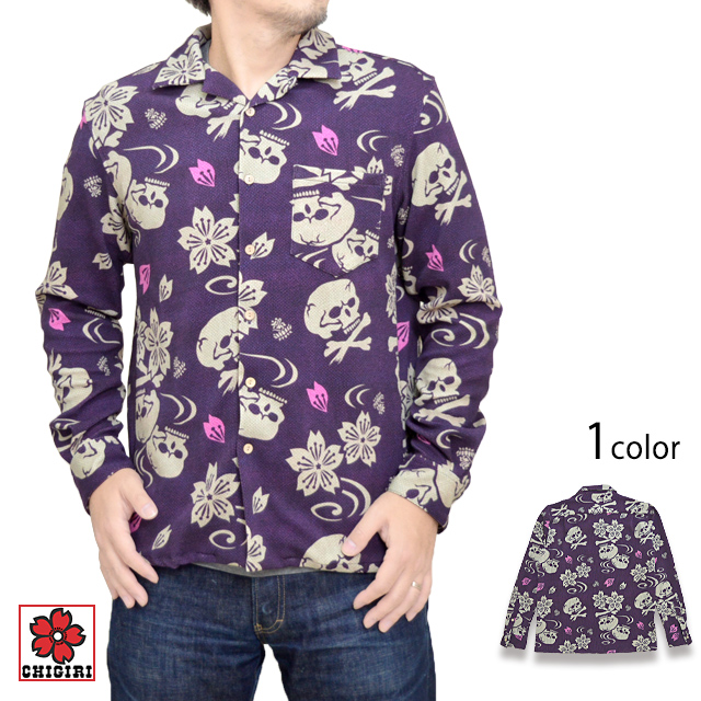| 桜スカル柄ストレッチ長袖シャツ◆CHIGIRI CHG-M04072 | |||||||||||||||||||||||||