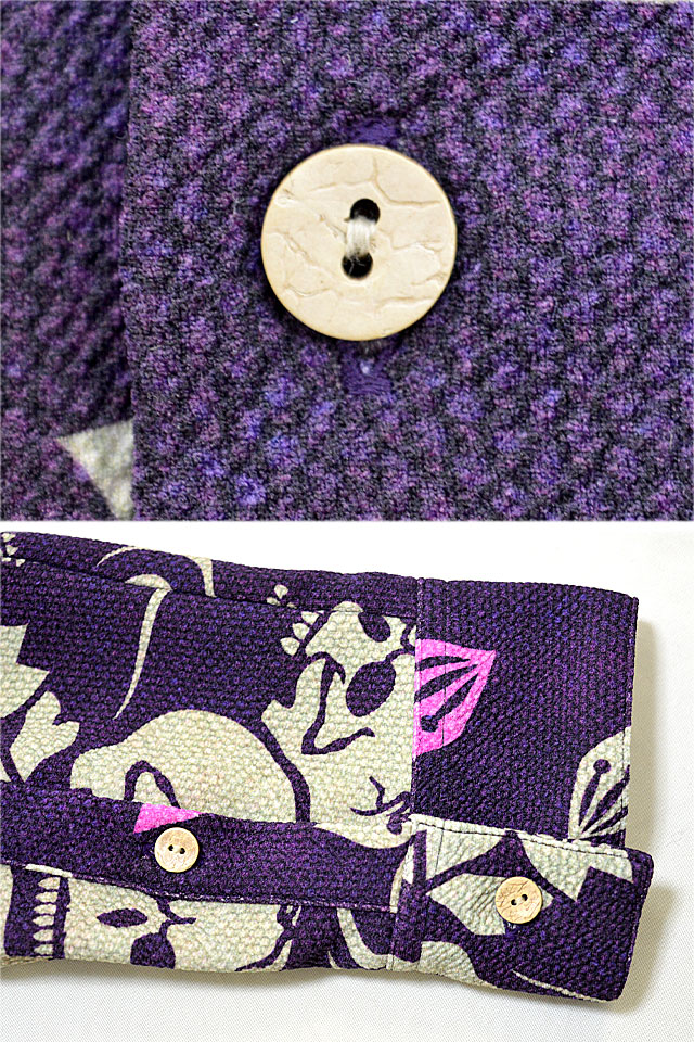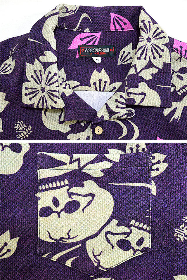 ストレッチのきいた生地を使用し、桜スカルの総柄シャツを製作しました。