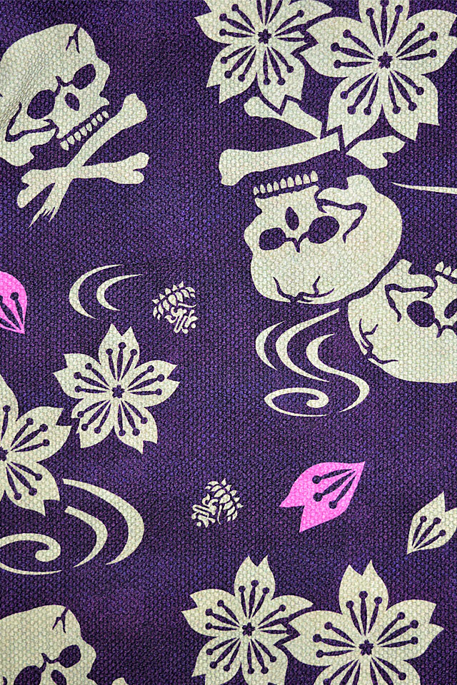インディゴ刺子生地に桜スカル柄をあしらったデザイン。