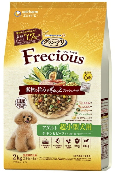 ユニチャーム グランデリ フレシャス アダルト成犬用 超小型犬用 チキン&ビーフ入り 2kgx4個(ケース販売)