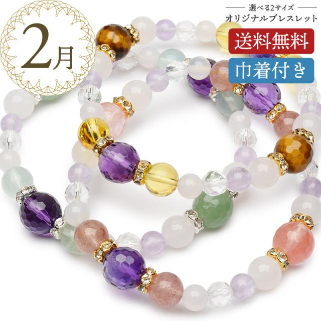 【2月限定★月替わり】天然石 パワーストーン ブレスレット 巾着付き 癒やし 恋愛 金運 アメジスト フローライト シトリン 水晶 アベンチュリン タイガーアイ 当店オリジナル メンズ レディース 男 女 アクセサリー プレゼント メール便送料無料_MB1