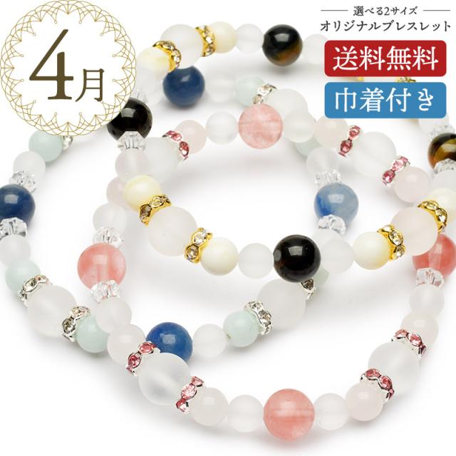 【4月限定★月替わり】天然石 パワーストーン ブレスレット 巾着付き 癒やし 恋愛 金運 アベンチュリン ローズクォーツ 水晶 タイガーアイ 当店オリジナル メンズ レディース 男 女 アクセサリー プレゼント メール便送料無料_MB1