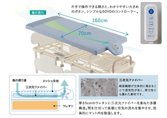 送風ファン付きマットレスを標準装備