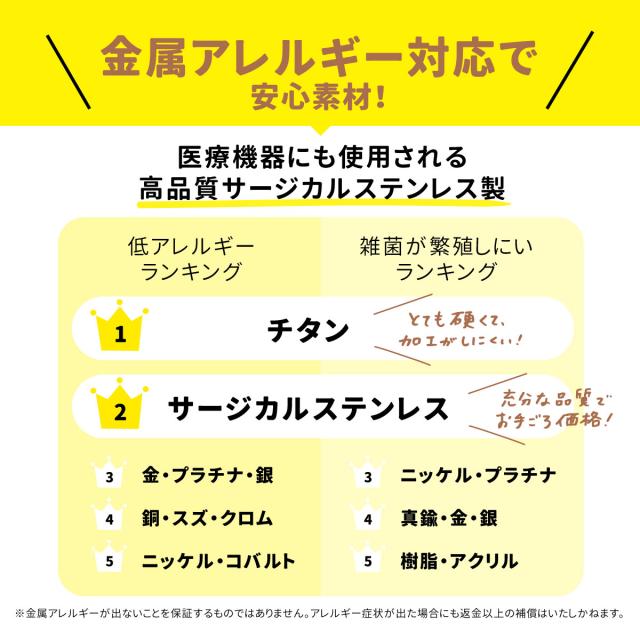 | サージカルステンレス チタン アクリル/樹脂/シリコン |
